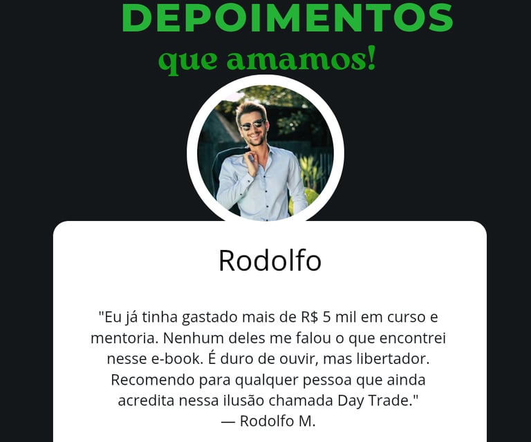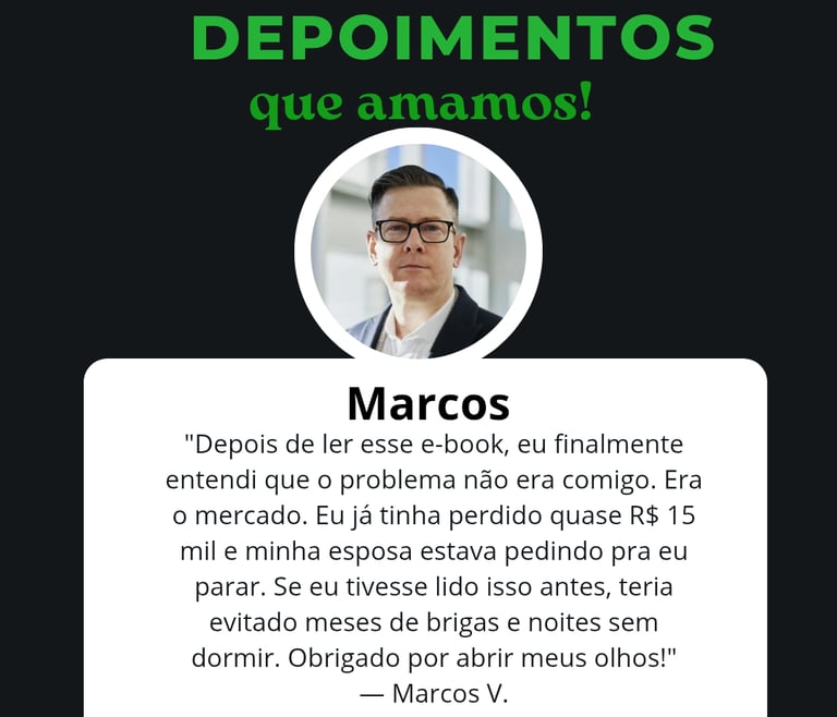 “Antes de perder R$100 mil no Day Trade, eu acreditava que disciplina e estudo eram suficientes. Hoje, depois de 8 anos de frustrações, entendi a verdade que os ‘gurus’ escondem. Este eBook é um alerta real: o Day Trade destrói sonhos, famílias e vidas inteiras. Leia antes de colocar seu dinheiro — ou você pode pagar um preço que nunca recuperará.”
